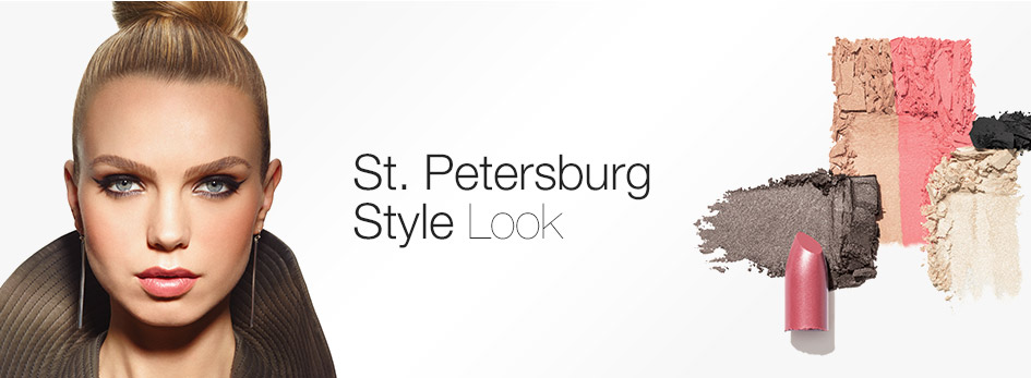 Apply Granite mineral eye color across lids. Highlight inner corners and brow bones with Crystalline mineral eye color. Brush Coal mineral eye color into creases and blend. Line with Jet Black gel eyeliner and wing out.